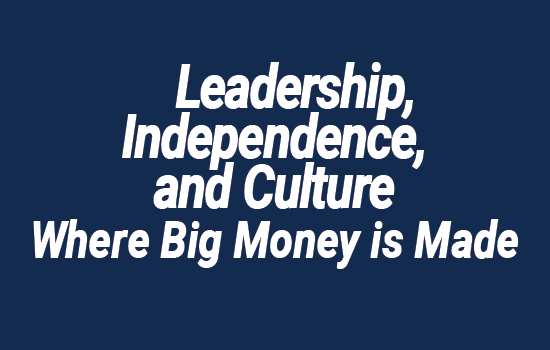 Read More »Building Business Value in a Tough Economy – Leadership, Independence, & Culture – Where Big Money is Made