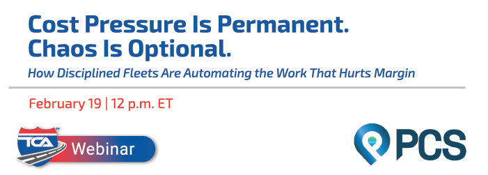 In this TCA webinar, PCS CEO Mark Hill is joined by Jason Douglass, VP of Community & Engagement and former trucking operations and recruiting leader, to share what they’re seeing across today’s fleets. Together, they’ll break down how disciplined carriers are responding to permanent cost pressure by automating the work that creates noise, delays, and margin surprises — without reducing headcount.