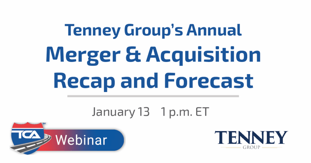 Join Spencer Tenney, CEO, and Beau McGinnis, Sr. Associate , of Tenney Group, as they provide a comprehensive overview of M&A activity in trucking and logistics during 2025, with a forward-looking perspective on what to expect in 2026. This session will dive into successful transactions, emerging trends, and what’s driving the market today, while also providing attendees a first look into Tenney Group’s 2026 Annual Report.