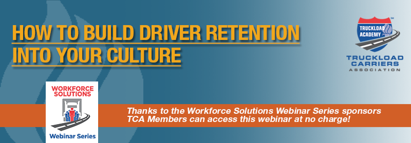 The Workforce Solutions Webinar Series sponsors are a part of a consortium of industry vendors that serve the truckload industry by providing services to carriers that supports their efforts in recruitment, retention or human resources. Their support of the Workforce Solutions Webinar Series means that the webinar and the recording will be available to all TCA members without charge.